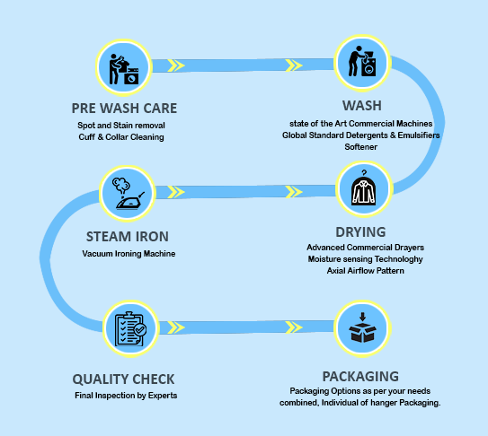 We provide best dry cleaning service for bridal wear, and silk sarees. Our dry clean service portfolio also includes woolens, suit, lehenga, carpet, blanket, curtains, blinds, soft toys, suitcase/trolleys and leather jackets. We also provide steam iron and color dyeing.